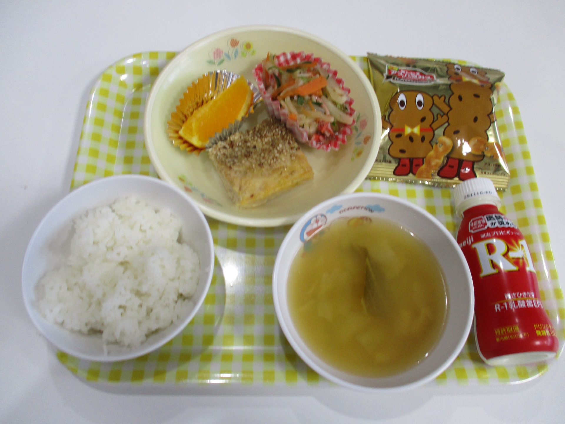 松風焼き・大根サラダ・みそ汁・オレンジ
