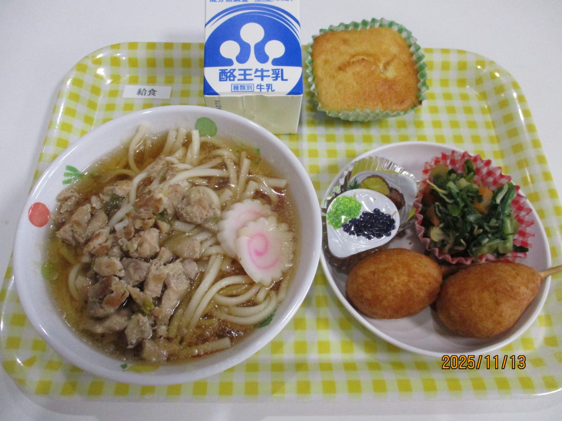 給食:うどん・アメリカンドック・しらす和え・ゼリー