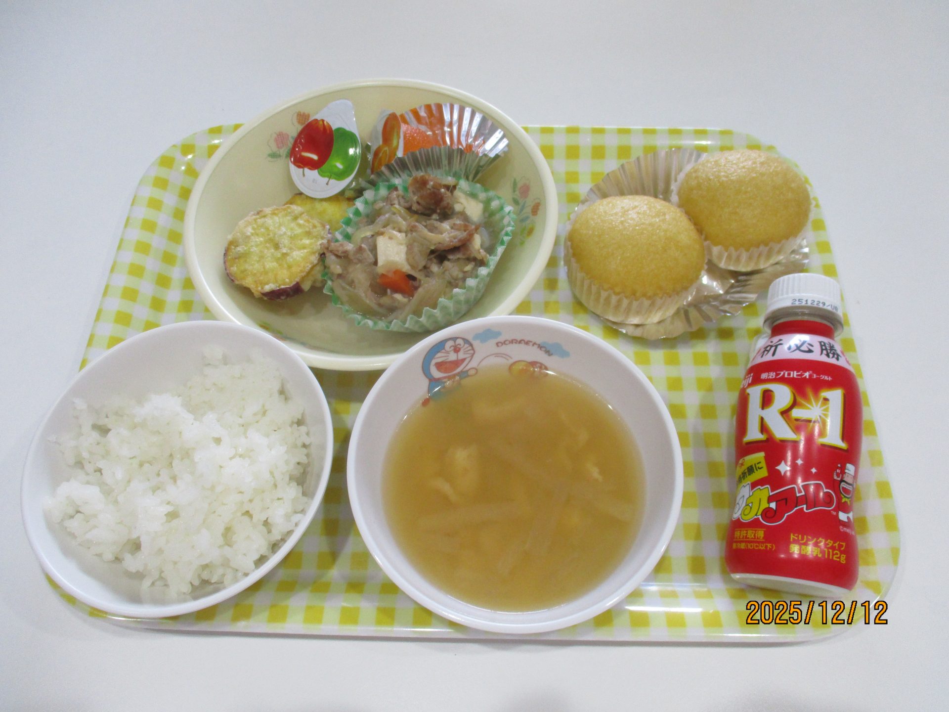 給食:すき焼き風煮・さつまいもの天ぷら・みそ汁・ゼリー
