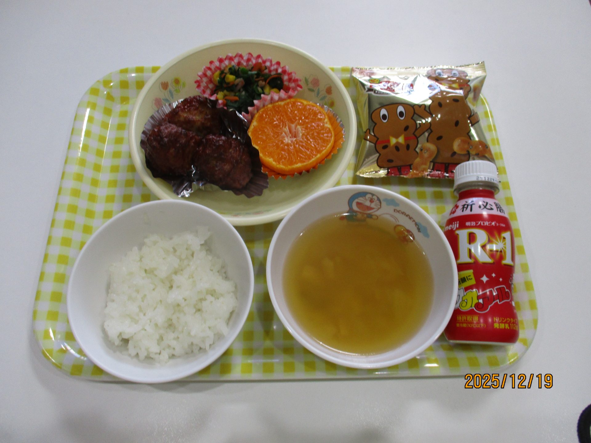 ミートボール・ほうれん草のソテー・みそ汁・みかん