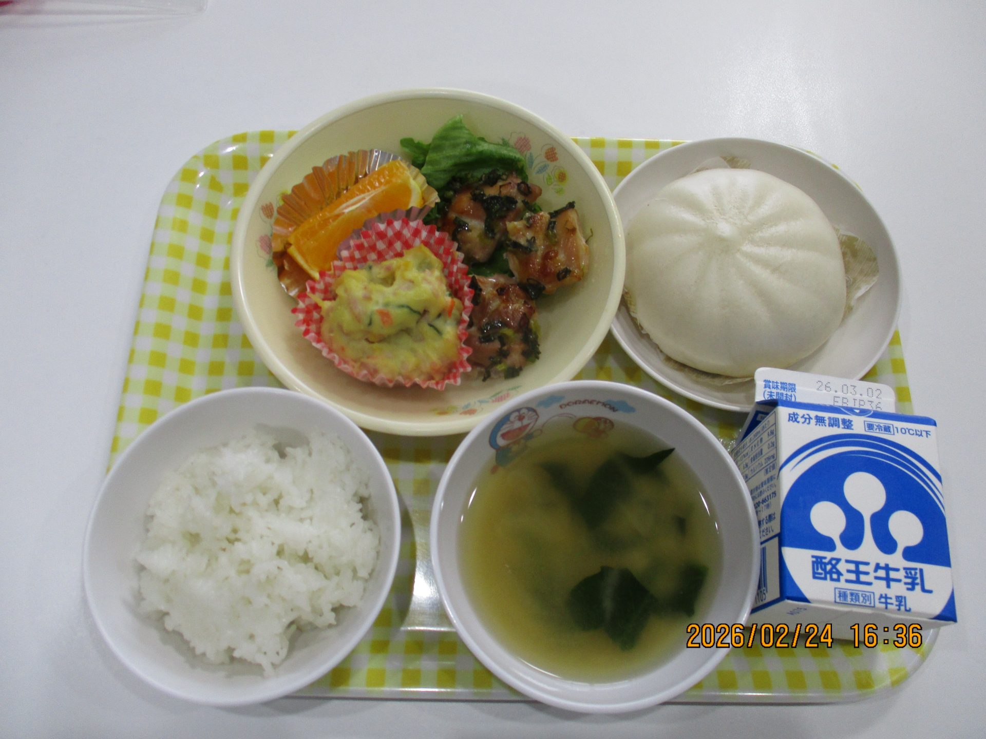 ・鶏肉の照り焼き・さつまいもサラダ・みそ汁・デコポン