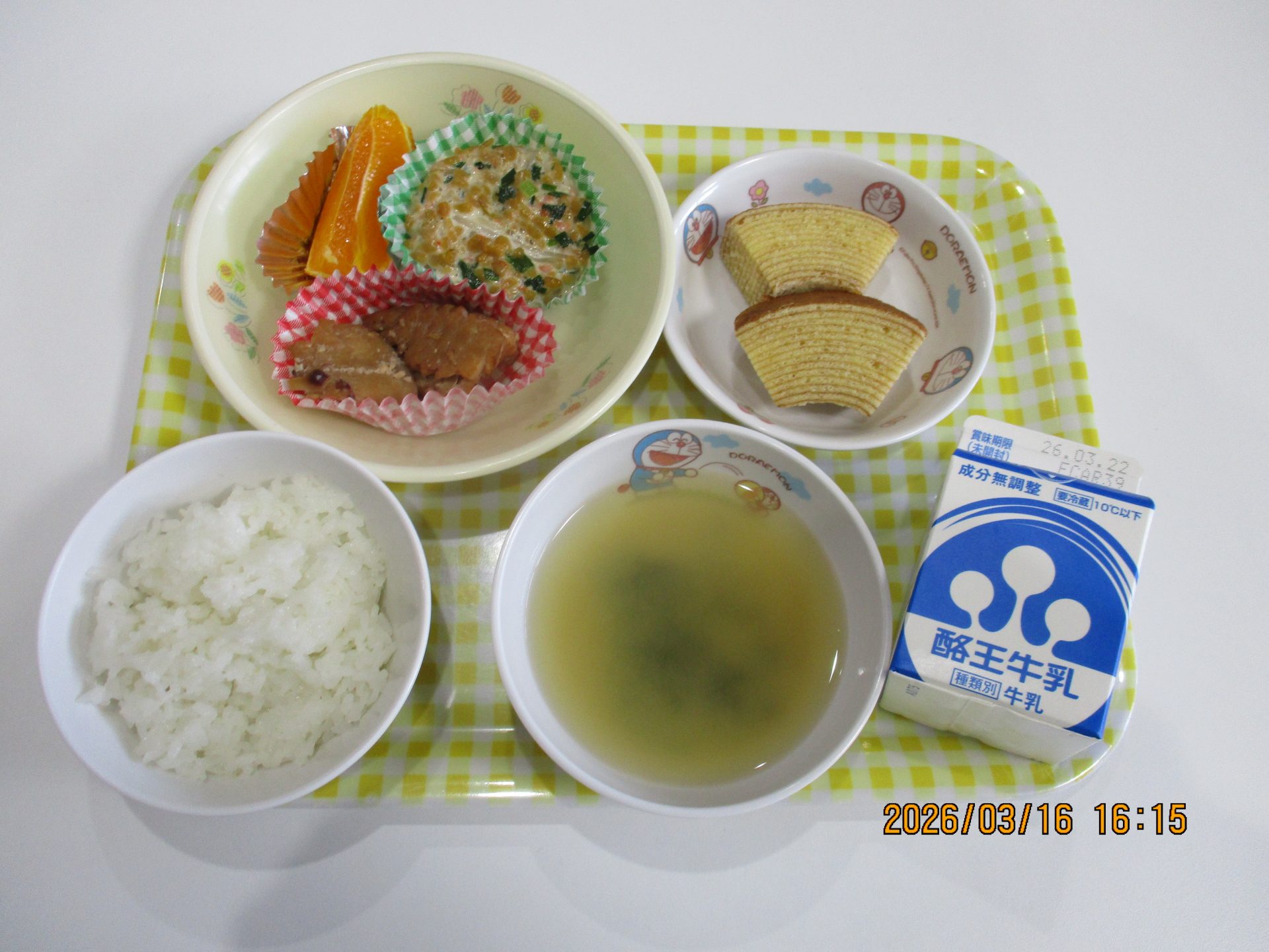 今日のお給食とおやつの献立です。